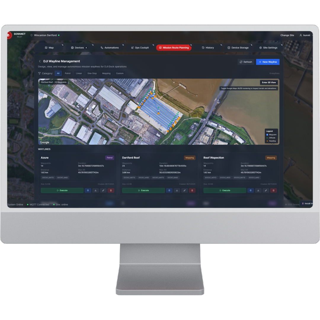 Detect threats and risks via integrated sensors & AI algorithms specific for the maintenance of site safety on commercial & Industrial sites. Integrate gas/air quality sensors, fire alarms and more to act as triggers for drones to respond to.